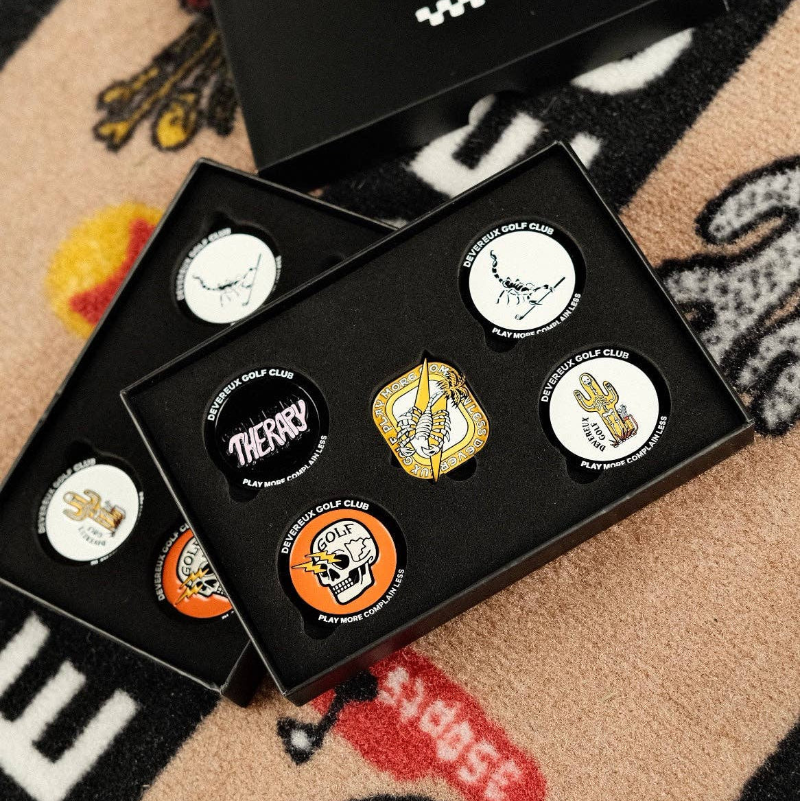 This set includes: * Shocker Skull – A bold design for golfers who dare to stand out. * Scorpion Golfer – A unique blend of desert toughness and golf precision. * Golf Is My Therapy – A reminder of why we hit the greens in the first place. * Scorpion Medallion – A sleek and stylish tribute to the Arizona desert. * Cactus Voodoo – A touch of mystique to spark conversation on the course. Crafted with premium materials, these ball markers are durable, functional, and stylish—making them the ultimate accessory for any golfer. Whether you're treating yourself or gifting the golfer in your life, this 5-pack of iconic designs is the perfect way to bring personality and flair to every round.