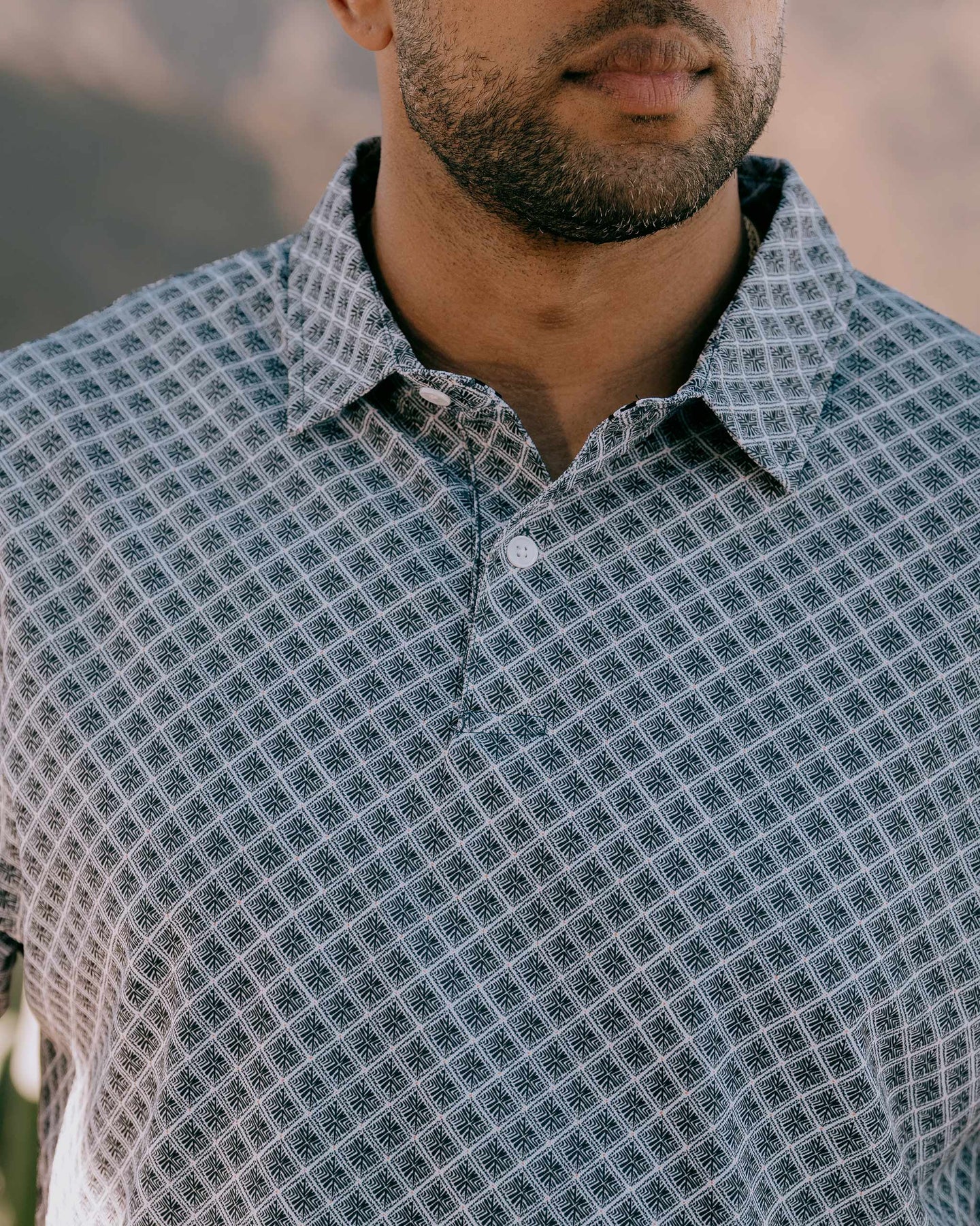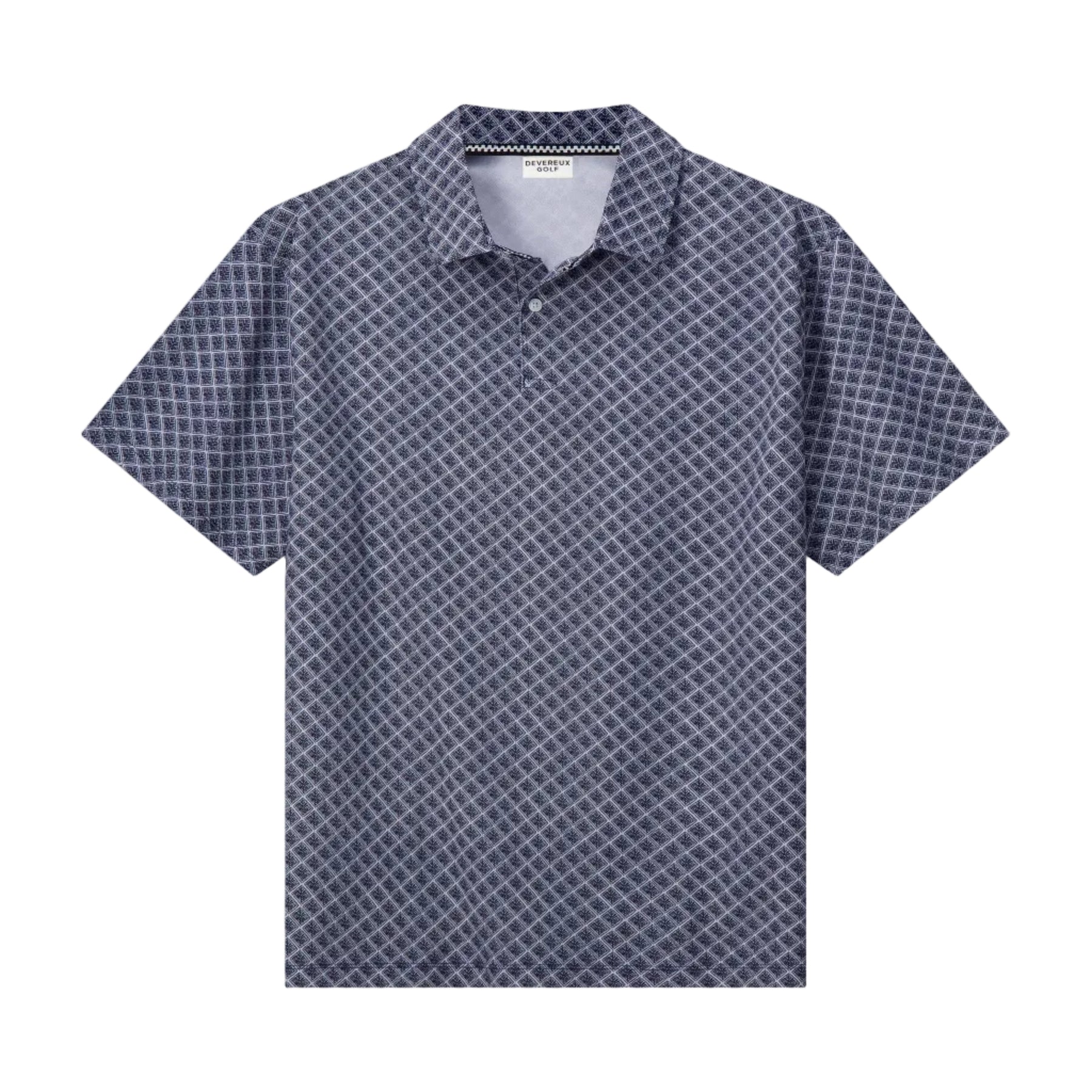 The TBD Polo is built on quiet confidence. Designed to feel familiar yet elevated, this polo bridges Devereux Golf’s modern design language with classic golf styling. The understated geometric print keeps the look refined and versatile, while the performance pique fabric delivers comfort and stretch. With a self-fabric collar and cuff, this polo leans traditional—making it an easy entry point for new customers and a reliable staple for long-time Devereux wearers.