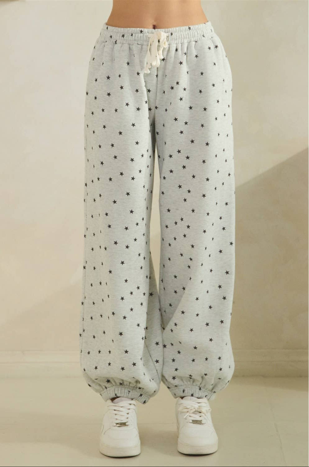 Slip into ultimate comfort with our Stella Star Sweatpants. Designed for lounging, running errands, or cozy nights in, these sweatpants feature a relaxed fit that moves with you. The soft, breathable fabric keeps you comfortable all day long, while the elastic waistband and tapered ankles provide a flattering silhouette.