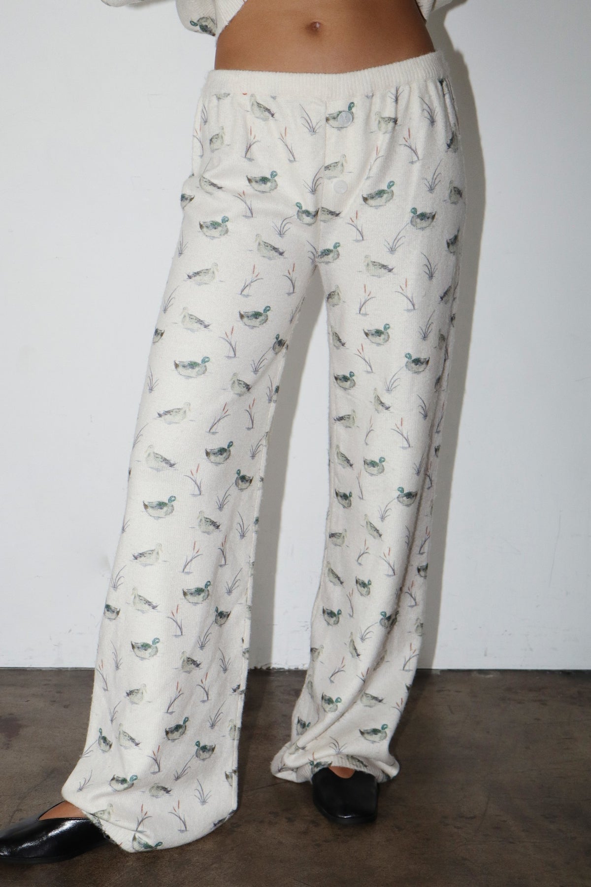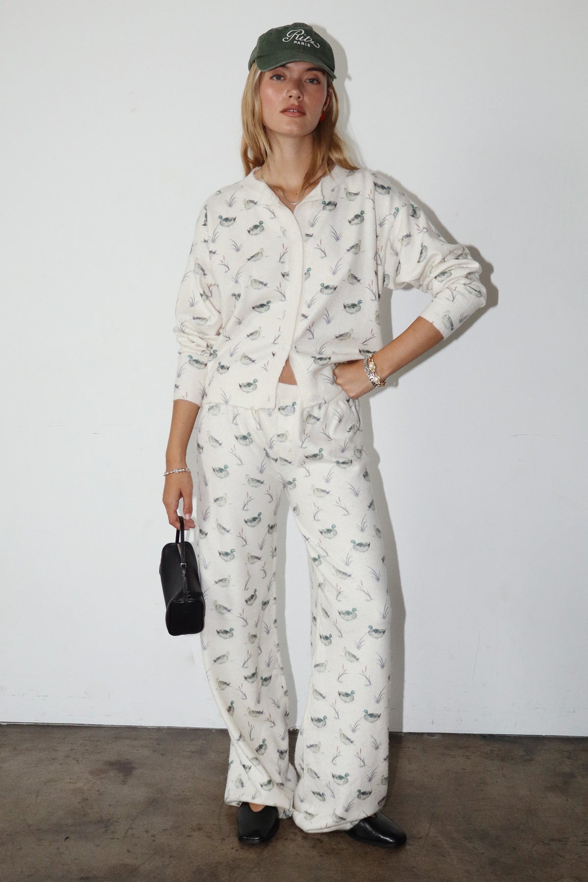 Samantha Duck Knit Pants feature a playful duck print that brings personality to your everyday wardrobe. Crafted from soft, comfortable knit fabric, these pants offer a relaxed fit perfect for lounging or casual outings.