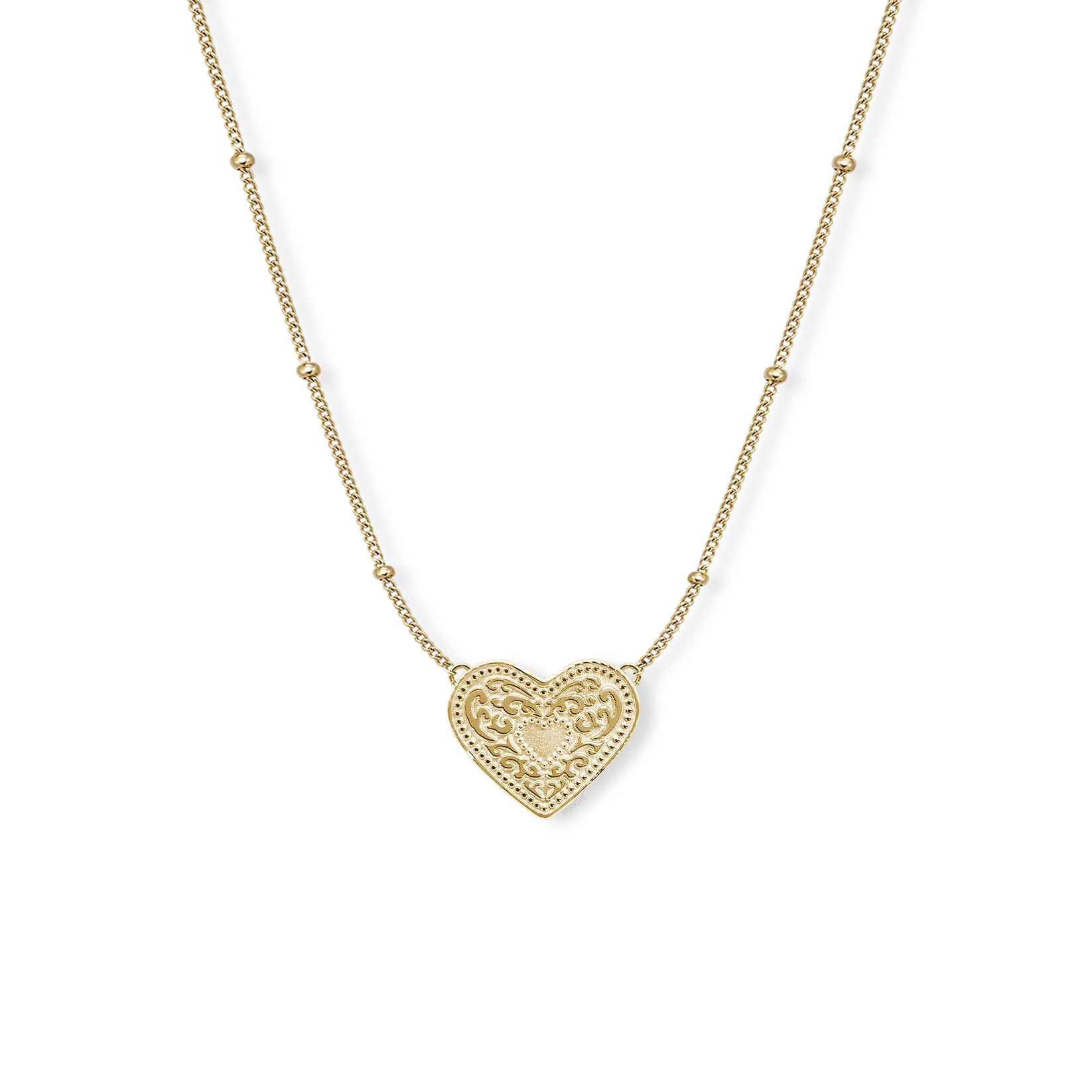 Introducing the Audrey Heart Necklace, an elegant blend of timeless romance and subtle Western spirit. Featuring intricate filigree detailing and crafted in 14k Gold fill, this piece is designed to shine through every moment. Finished with our signature SpurWest Shield tarnish protection, it delivers lasting beauty, everyday durability, and effortless style for those who wear their heart with a little edge.